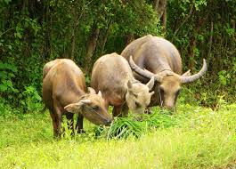 They still use these animals to plow fields. They are slowly being replaced by tractors, but because of the way water buffalo walk and how deep they step, the grass and the weeds grow back slower, so, though the tractors are easier and eat less, farmers have to spend more time weeding in the fields.