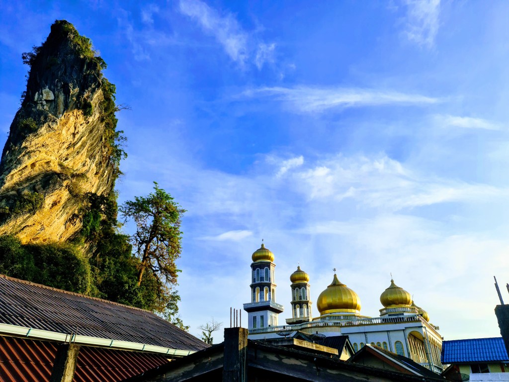 Hundreds of years ago, muslims from Indonesia and Malaysia came north. And, because muslims were not allowed to own land, they were confined to a tiny sliver of rock in the Bay of Phang Nga. They put up a mosque on the solid ground and then built up a village on stilts around it.