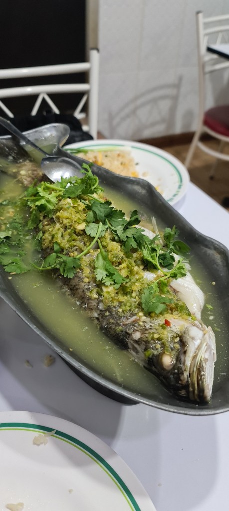 - T&K Seafood (49, 51 Phadung Dao Rd, Samphanthawong, Bangkok 10100, Thailand) T&K Seafood is great! If you walk down Yarowat Road, there are a number of places to eat. Hawkers beckon and wave menus under your nose. Honestly, this is the only place we’ve tried, but it is consistently good stuff, so we kept going back. There is often a line, but it moves quick. They’ll wave you to a seat on the street or any number of tables up stairs. On the street is where you wanna be, even if it’s a hundred degrees. Cars and tuk tuks will roll by. Every once in a while, you’ll catch a whiff of something other than food. It may be the sewer, but it may be the chestnuts roasting down the street. In addition to the ambience, the food is wonderful. Try the steamed sea bass with garlic and lemon sauce, served in a brazier at the table. The crab fried rice is great as are the curried crabs and tamarind shrimp. Topped off with a beer over ice and it’s a great night out.